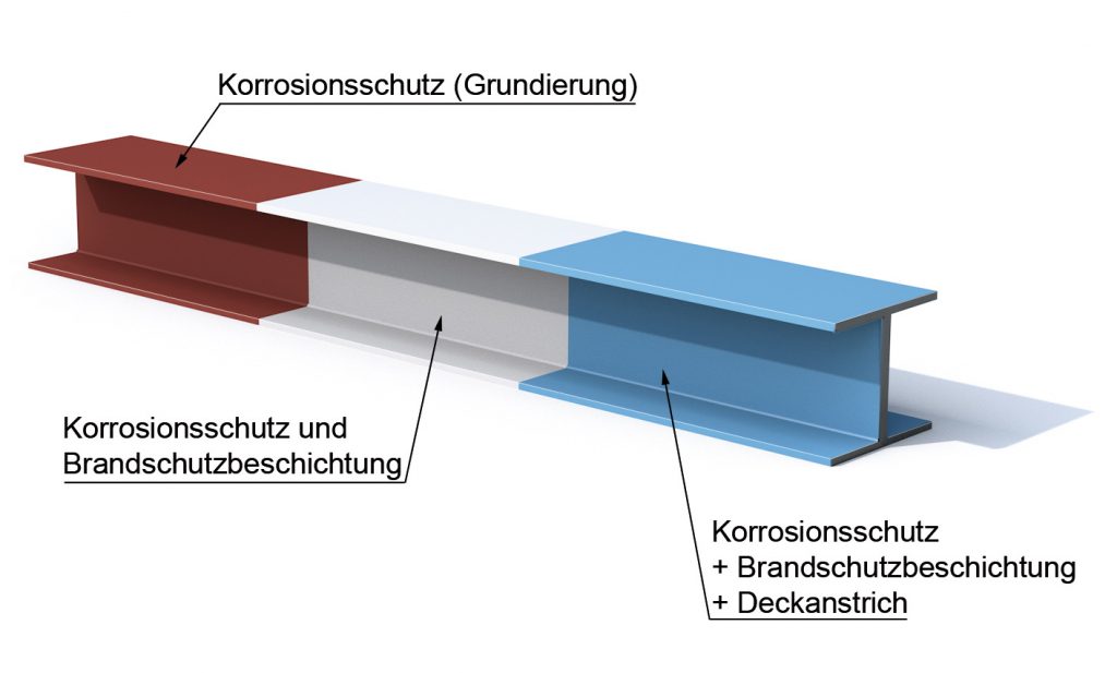 Die Produkte für den Beschichtungsaufbau, bestehend aus Korrosionsschutz (Grundierung), Brandschutzbeschichtung (Dämmschichtbildner) und Deckanstrich (Überzugslack), müssen entsprechend der aktuell gültigen Zulassung verarbeitet werden.